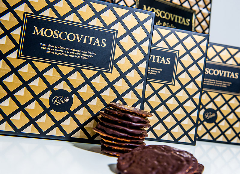 Las Moscovitas® de Rialto son dosificadas a mano y bañadas con chocolate de manera totalmente artesana, y se elaboran una a una siguiendo un exigente criterio de calidad. Siendo éstas las principales causas del éxito de las Moscovitas® no sólo entre los asturianos, sino también entre el resto de clientes que ya han degustado su especial sabor.